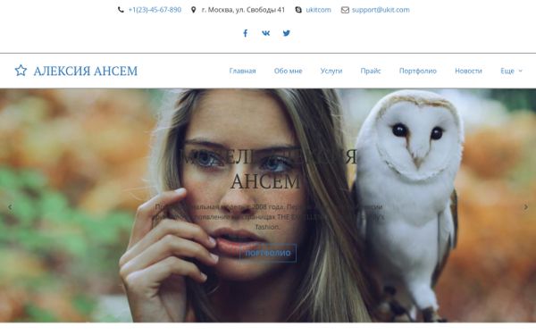 качественный макет для сайта фотографа, который поможет показать его услуги и примеры выполненных работ. На главной странице предусмотрен блок для рассказа о специалисте. Ниже расположена секция со списком основных услуг. Примеры работ можно посмотреть в разделе «Портфолио». Часть фотографий можно вывести на главную страницу сайта — визуальные инструменты редактора uKit позволяют сделать это без навыков программирования.