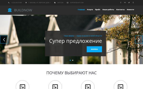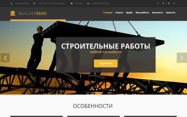 создайте с помощью этого шаблона сайт управляющей компании, чтобы рассказывать жителям подотчётных домов и потенциальным клиентам о своих преимуществах и важных новостях. Покажите основные товары и услуги в блоке на главной странице. Разместите примеры выполненных работ в разделе с галереей и не забывайте публиковать сообщения, которые касаются жителей ваших домов.