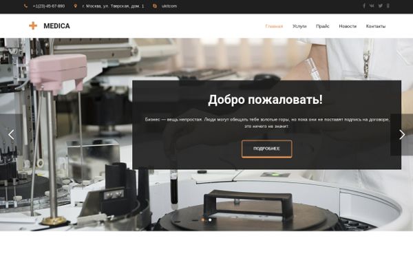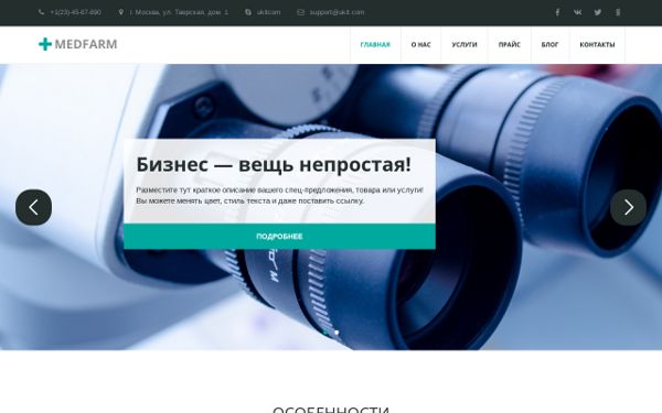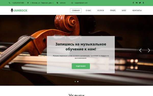 универсальный шаблон, который можно быстро кастомизировать под свои нужды в визуальном редакторе. Предлагает раздел с услугами, который можно легко превратить в каталог товаров. На сайте реализованы формы онлайн-заказа и обратной связи, упрощающие общение клиентов с администратором. Есть привлекательный слайдер и раздел с новостями, который можно переделать в блог.
