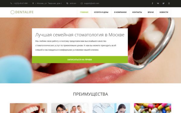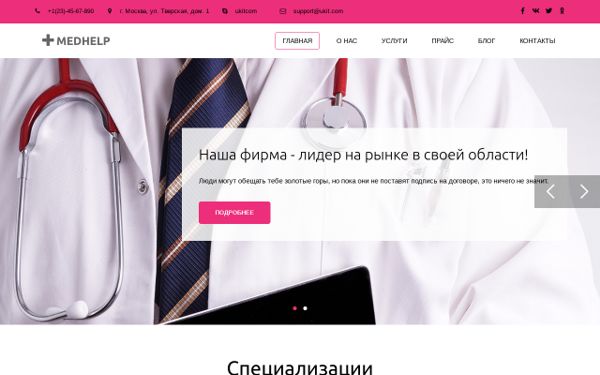 универсальный шаблон для страховой компании, предлагающей широкий спектр услуг. На главной странице есть все необходимые элементы для продвижения организации: форма обратной связи для записи на приём, преимущества, список услуг, отзывы клиентов. Ещё больше полезной информации размещено в других разделах сайта. Шаблон предлагает примеры фотографий и текстов, чтобы вы понимали, как может выглядеть готовый сайт. Вам остаётся только добавить уникальный контент, прежде чем запускать проект в открытый доступ.