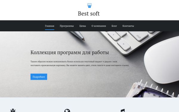 бизнес-шаблон для сайта компании, которая занимается инвестициями и финансовым консультированием клиентов. На главной странице размещена информация об основных услугах и фактах о фирме. На шаблоне по умолчанию создана новостная страница с примерами оформления постов. Важные новости вы можете выводить на главную страницу — соответствующий блок предусмотрен.