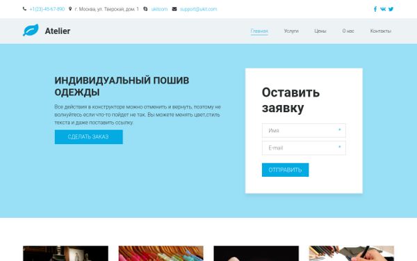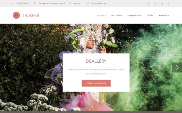 модный макет для создания современного сайта студии декора. Дизайн по умолчанию отражает творческую направленность деятельности. Упор сделан на демонстрацию примеров выполненных работ, для чего широко используются галереи uKit. Есть раздел с новостями, который можно использовать для публикации важной информации для клиентов или полезных статей о декоре, приводящих новых посетителей из поисковой выдачи.