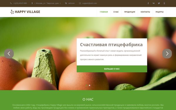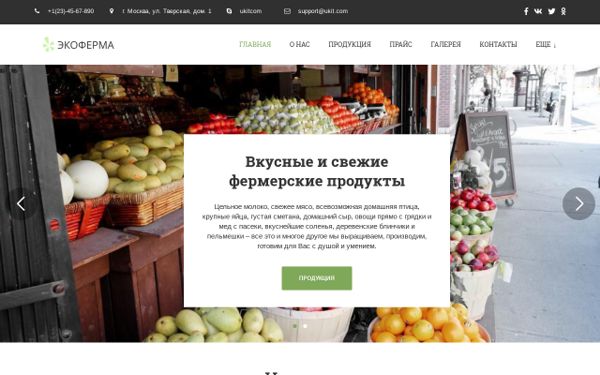 Компактный лендинг с красочным, натуралистичным дизайном. Подходит для организации поставок сельскохозяйственной продукции и отельного бизнеса в экологических чистых зонах. Зелёные акценты, тематические графические элементы и яркие фотографии передают атмосферу чистоты и качества продукции. Прайсы, условия доставки и оплаты, контакты — всё есть.