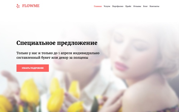 нежный дизайн с готовой структурой для запуска студии флористики. Используйте его, чтобы рассказать об основных услугах компании и показать примеры лучших работ. Шаблон предлагает для этого все необходимые элементы: карточки товаров с кнопкой «Заказать», галерею, страницу с подробным прайсом и новостной раздел. Посетители сайта могут посмотреть, какие букеты вы делаете, и заказать их через форму обратной связи.