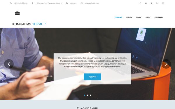 отличный выбор для сайта юридической компании. Слайдер можно использовать для рассказа о специалистах и услугах или публикации специальных предложений для клиентов. На главной странице много внимания уделено преимуществам компании, но вы можете быстро подогнать этот блок под нужный объем. Есть карточки основных услуг, к которым подключена форма обратной связи для обращения к менеджеру через сайт.