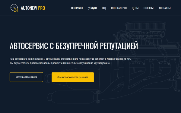 сайта автосервиса, ремонтной мастерской, визитки мастера по тюнингу.